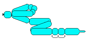 3/4" bubble and a 2" bubble. Give the 3/4" a Pinch Twist and then Toe Twist it to make the upper and lower beak. Give the 2" a loop twist for the head. The long