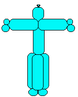 Next, make two 3-4 inch bubbles and Lock Twist them together. this forms the upper half of the face. Eyes drawn on with a permanent marker will add a lot to the character of your figure. This basic face is only the foundation for more elaborate figures.