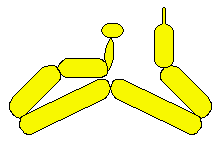 本帆船造型需黃色260q兩條做船身,一條棕色做桅竿,一條淺藍色當帆布。