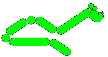 最後將二球之末端均綁在第一球的右端結點上,這樣就做好了船身。