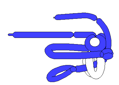 Make two 12-16 inch bubbles and loop twist them for pectoral fins. Any remaining balloon may be popped and tied off.