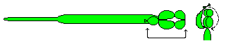 此種轉法是為了將氣球分成獨立的兩部分,使分開的部分不必打結而能有漂亮的尾部。首先轉出三個等大的小泡泡,為了方便施工可在其下方先打一個