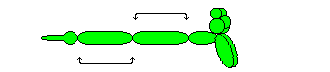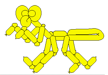 先轉出相同尺寸的二個泡泡,再將此二泡泡扭轉在一起。這是最常見的轉法,普遍使用在腿和耳朵等處。例如簡單的狗狗造型等。