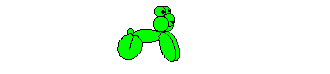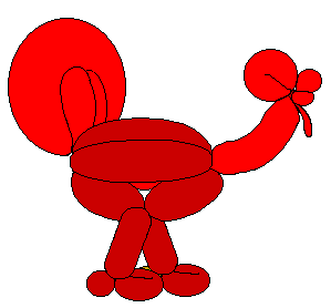 In the second dark balloon twist a 3-inch, 1-inch, 3-inch, 1-inch series. Twist the knot into the last twist to make a loop. Now Pinch Twist the two one-inch bubbles. These will be "cheeks" with the 3-inch bubbles making the lips. Bring the nipple end around and tie it to the opposite side of the lips, making a large loop. Squeeze the loop to distribute the air evenly.
