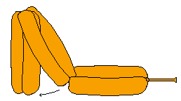 本造型難度甚高,須使用 3 條 Orange 260q 及 1 條 White 260q,折法有 Lock Twist、Pinch Twist、Loop Twist 。將一條 orange 和 white 打氣後各留 5" 尾部未充氣 。