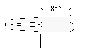 12吋、 3吋、3吋球來,將二個 3吋中間之第三結點處與第一條的