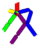 接著把這三條綠色260q之中央結點結合在一起,調整其位置如圖。使其構成六條放射狀展開之平面(若不在平面上,要將其拉回至應在的位置)。